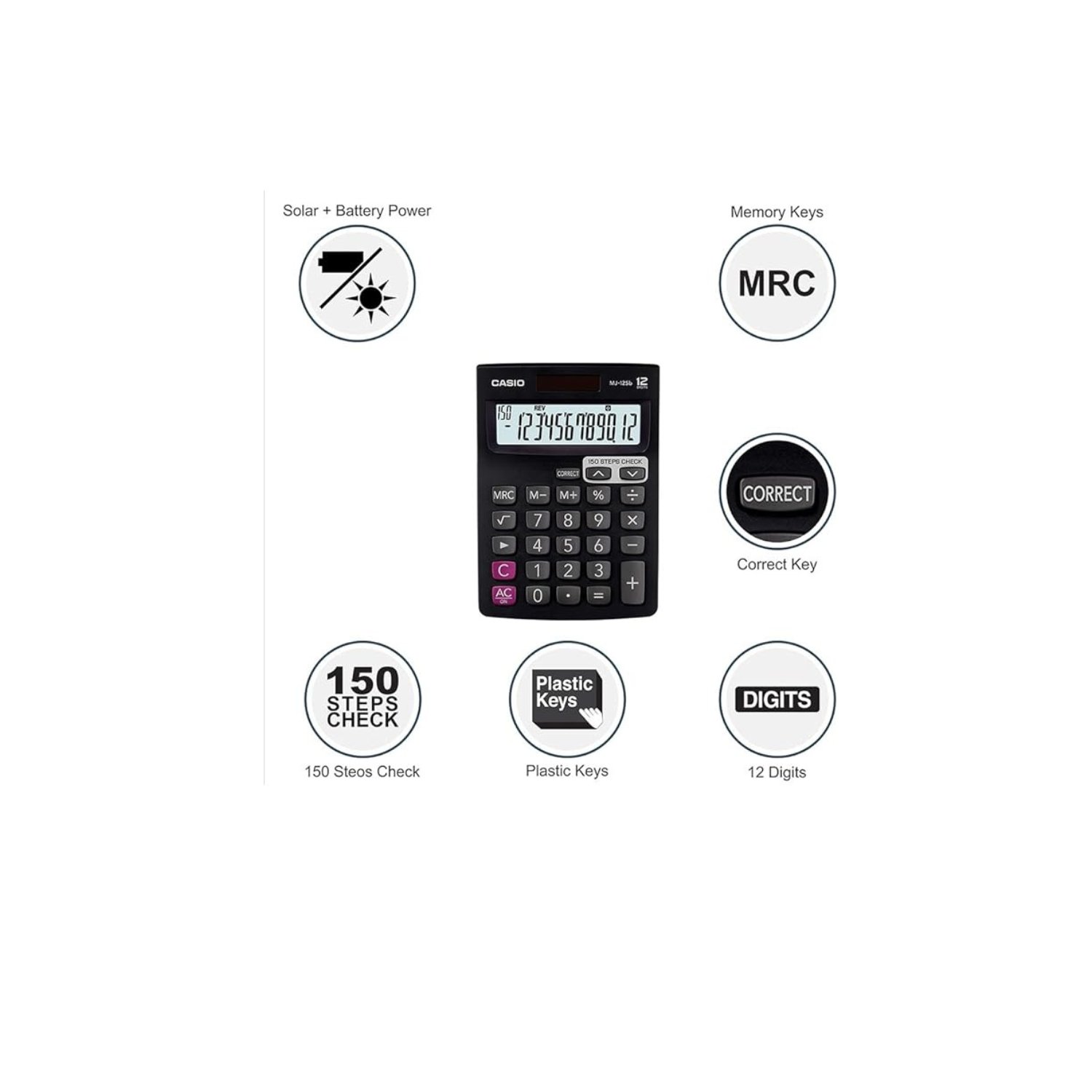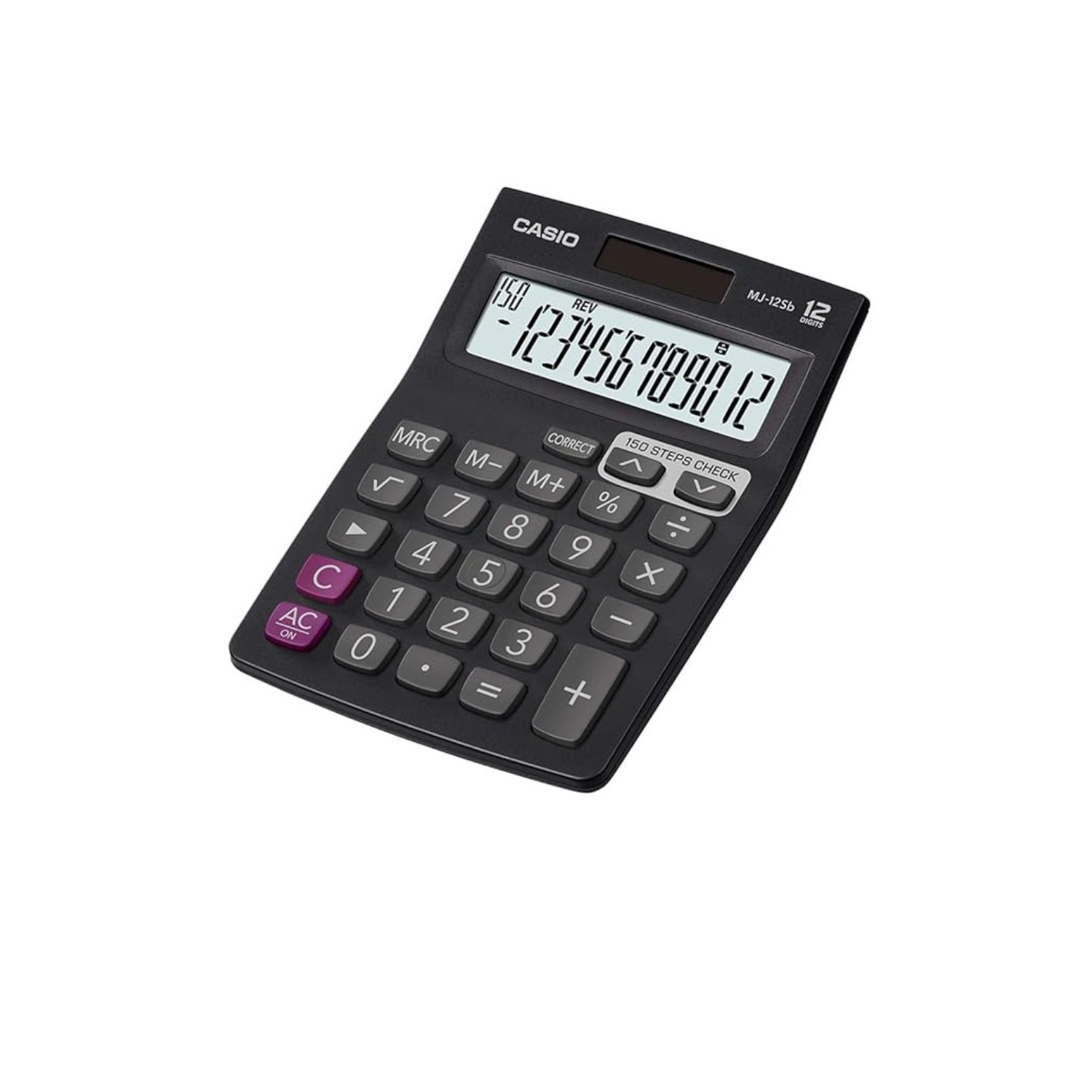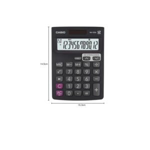 This calculator operates on dual power – solar and battery, ensuring continuous operation even in low-light conditions. Its lightweight and portable design make it perfect for office desks, home offices, and classrooms. The Casio MJ-12SB is ideal for accounting, billing, basic math operations, and general calculations.