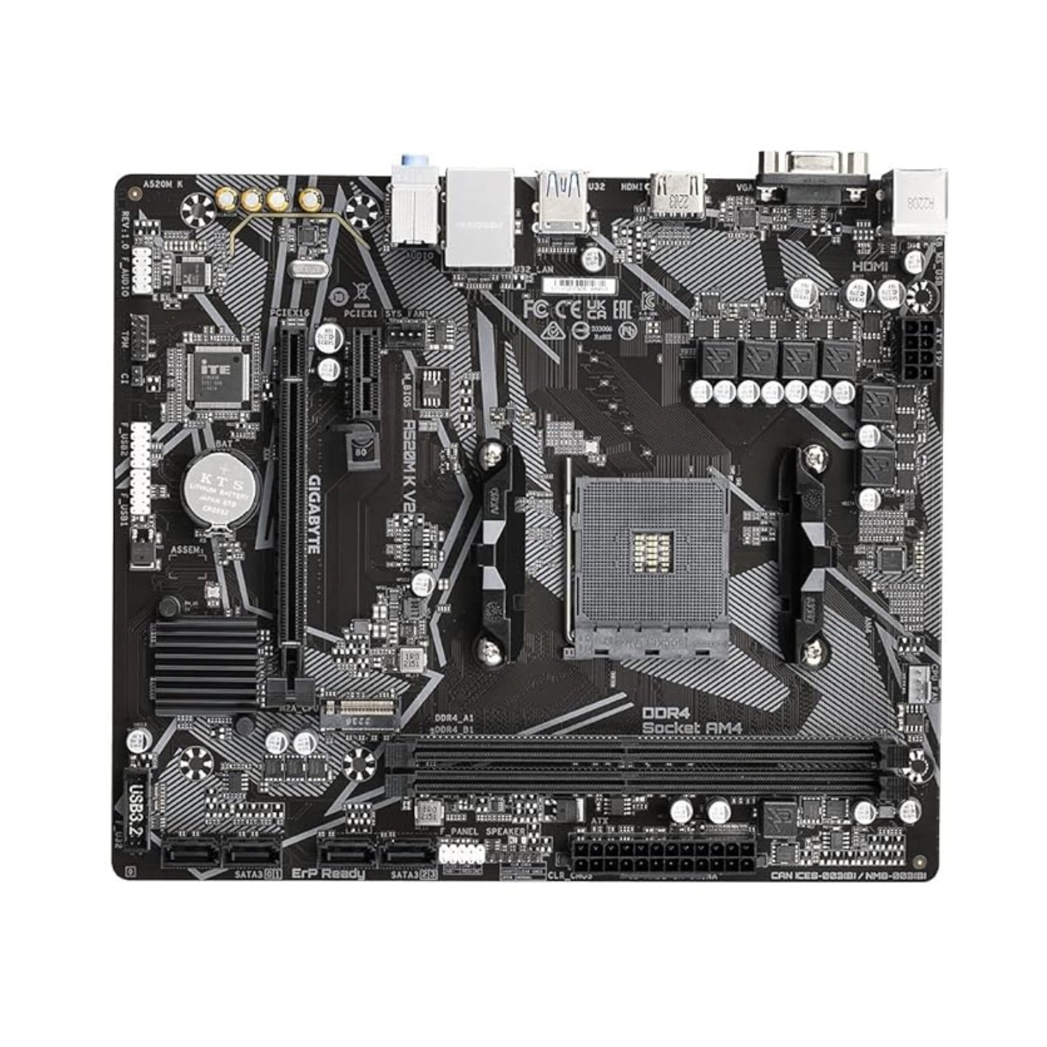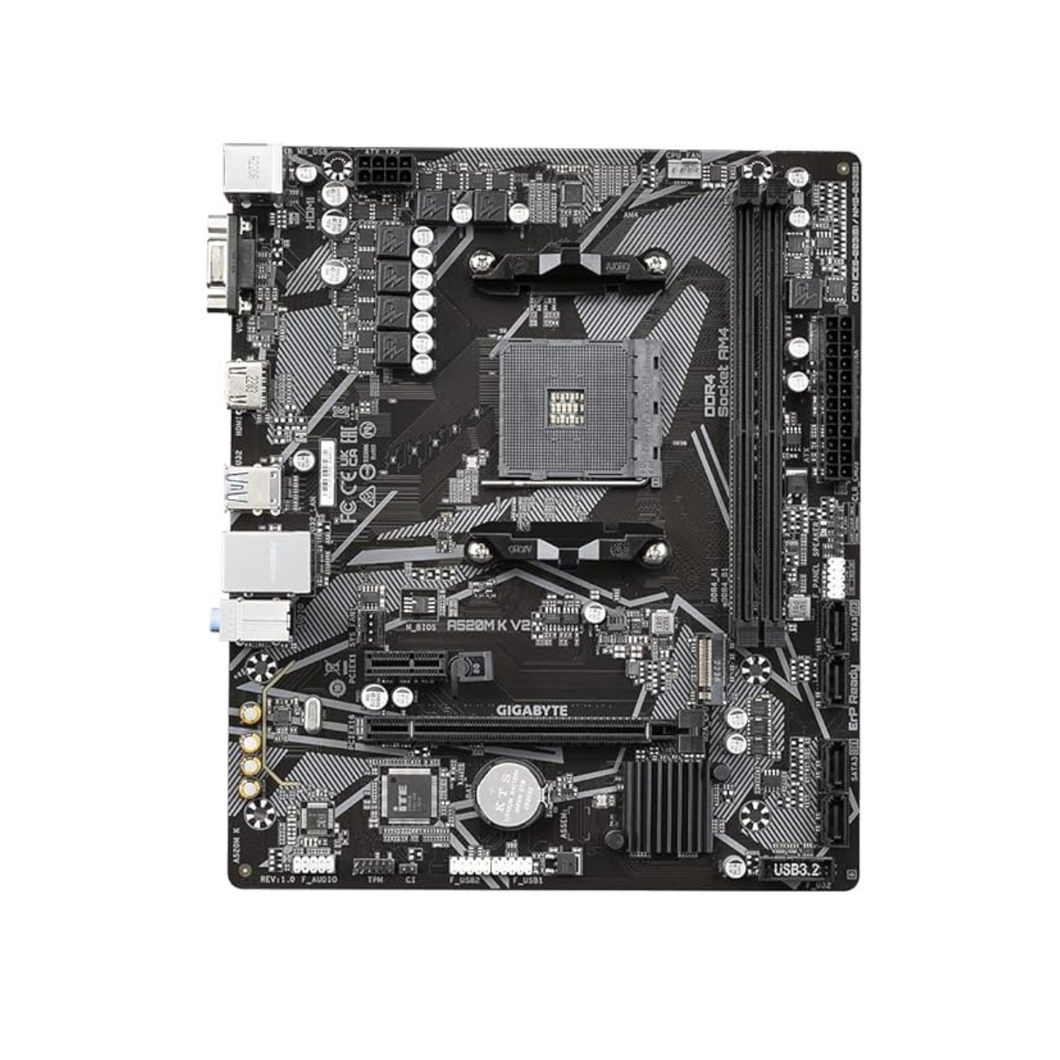 Build a reliable and budget-friendly PC with the GIGABYTE A520M K V2 (Rev. 1.0) Micro-ATX Motherboard. Designed for AMD Ryzen processors on the AM4 platform, this motherboard delivers stable performance, essential connectivity, and durable build quality—perfect for home, office, and entry-level gaming setups.