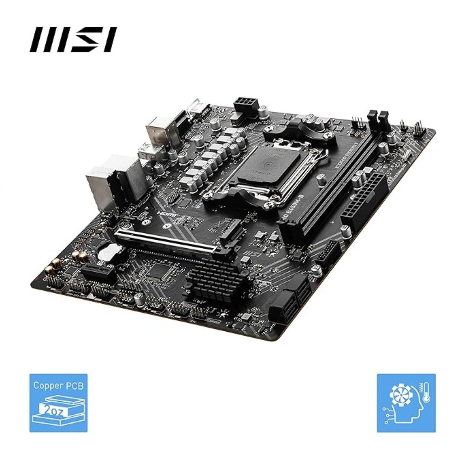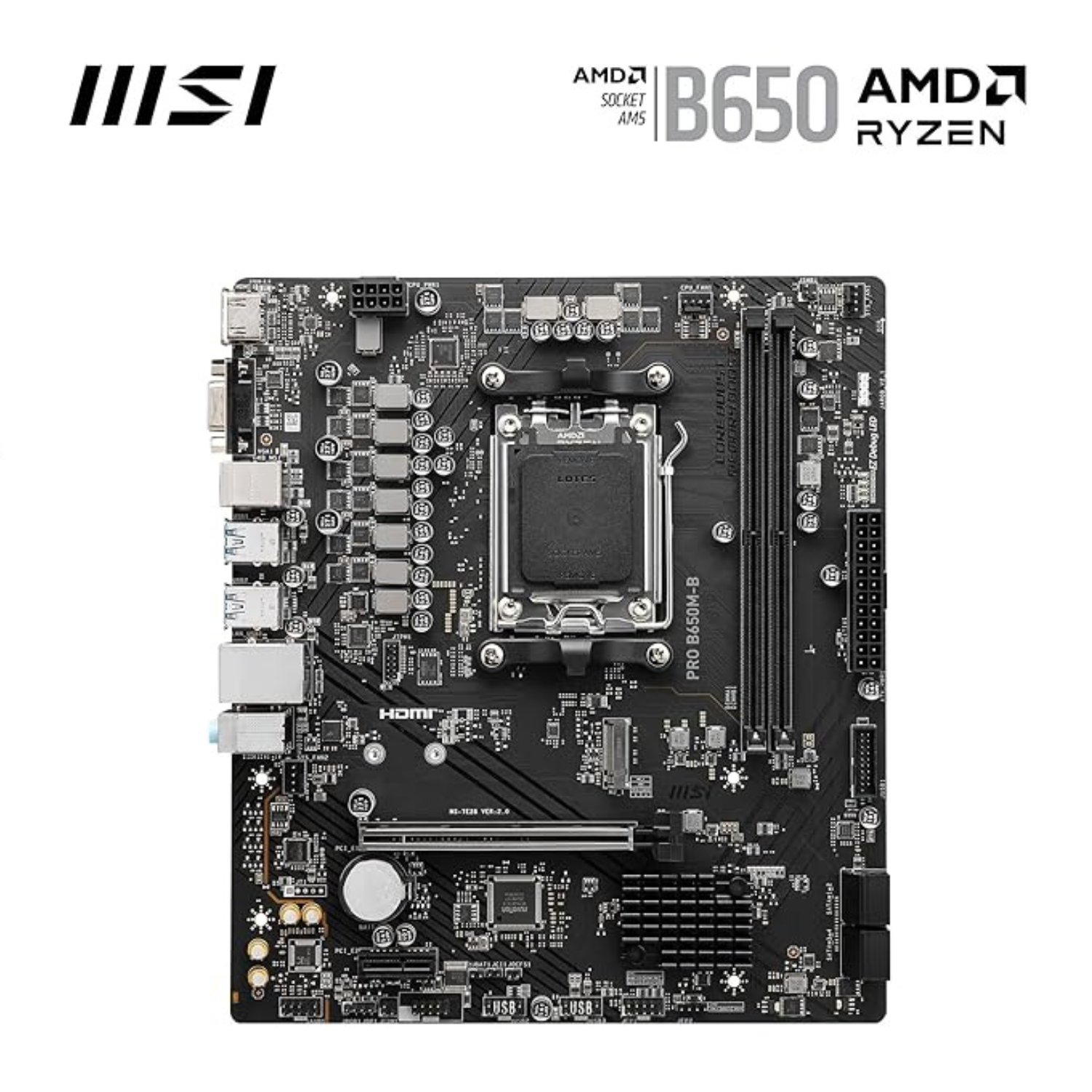 Build a reliable and high-performance PC with the MSI PRO B650M-B Micro-ATX Motherboard, designed for AMD Ryzen 7000 Series processors. Ideal for office, home, and entry-level gaming setups, this motherboard delivers stable performance, essential connectivity, and long-term durability.
